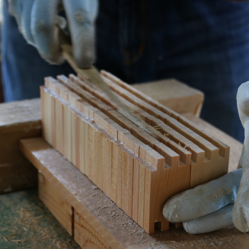 We use the wood shavings to make the mast part.We get a lot of wood shavings in the process of making MASU, and they used to go to waste.